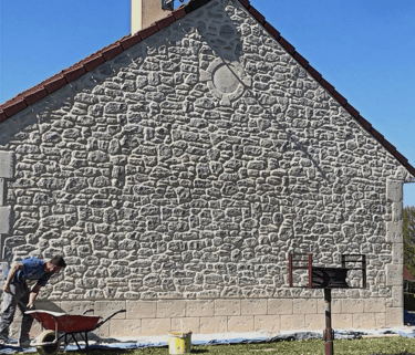 Rejointoiement hydraulique sur silex, finition brossé d'un pignon de 12m de haut par 6 et imperméabilisant.