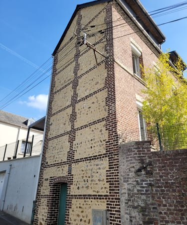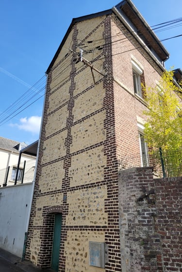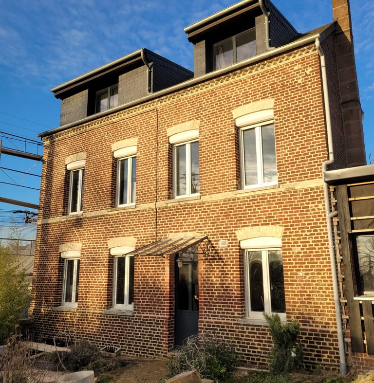 Rejointoiement d'une maison complète à Rouen. Utilisation d'une chaux St-astier et joints brossés.