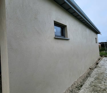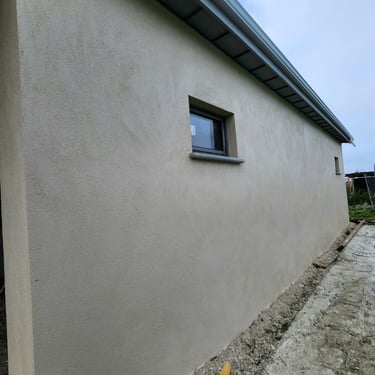 Maison en rénovation du côté d'Yvetot. Un ancien enduit en grain qui gondolait. Nous voulions changer l'esthétisme et réparer cela. L'avant après est incroyable ! Les artisans sont revenus 7 ans après pour refaire un mur de jardin et rien n'a bougé depuis. Merci encore.