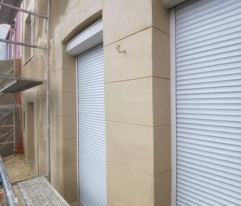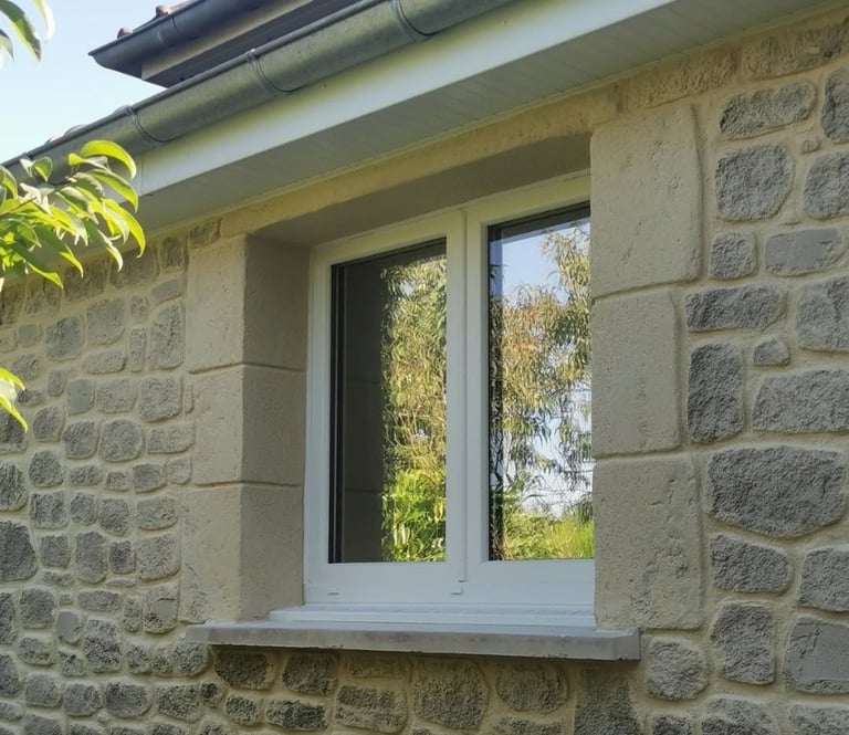 Dans le 76 nos clients désiraient un rendu simple, épuré, et uniforme. Du ton pierre sans couleur particulière ajoutée par dessus. Afin de donner du relief et un certain esthétisme, nous avons opté pour des contours de fenêtres en sur-épaisseur finition éponge.
